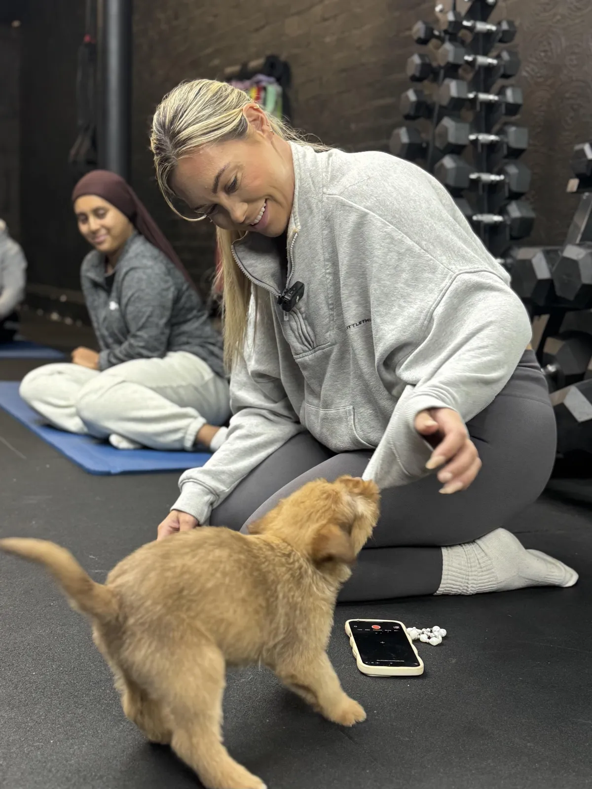 We start with a quick safety briefing before we introduce the pups, 20 minutes of yoga, stretching and relaxation and 20 minutes of play and photos